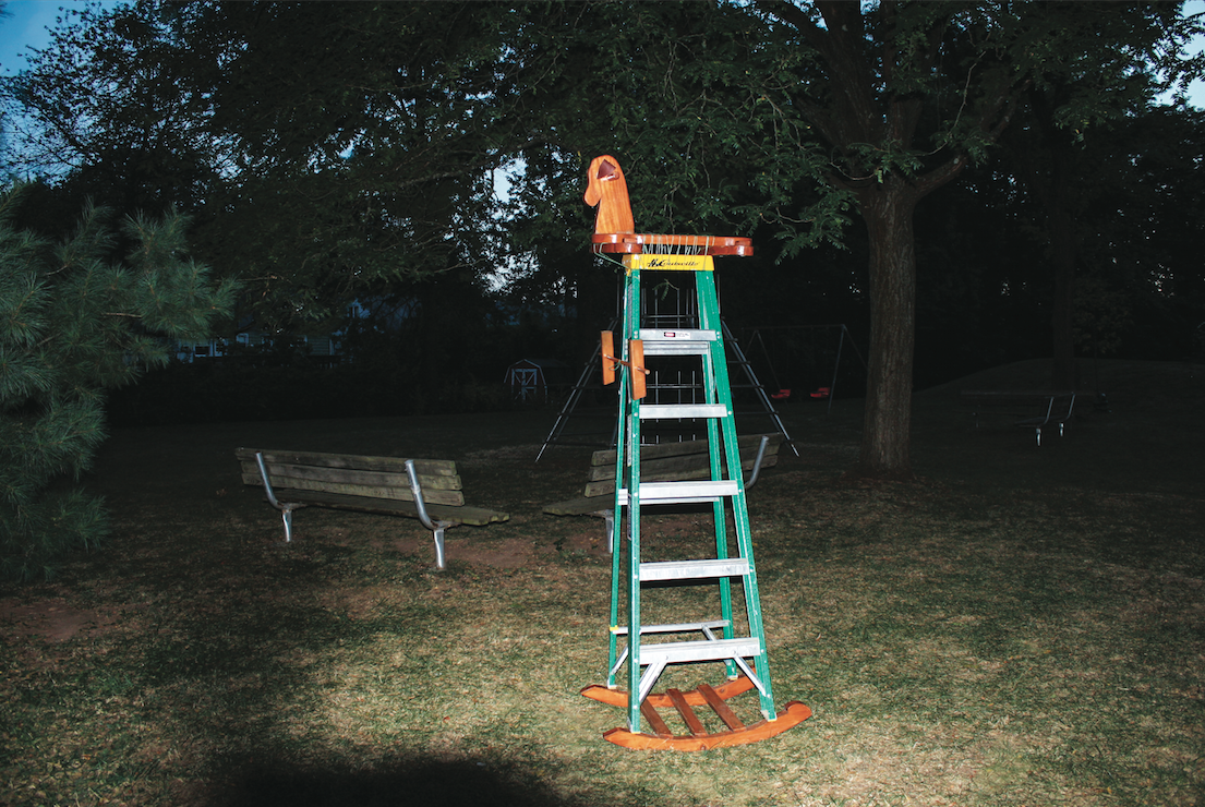 This ladder and rocking horse hybrid represents the ache of growing older, trying to maintain a sense of youthfulness that becomes harder to perpetuate as life treads on and the comfort of childhood falls further from your grasp.